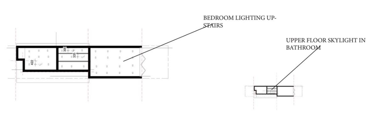 Maximum light has been used so as little as possible electricity use will be needed during the day to light up the home. There is also a skylight installed above the upstairs bathroom to provide additional light and a nice view to the sky whilst in the bathroom. There is no change to the original footprint of the building size.